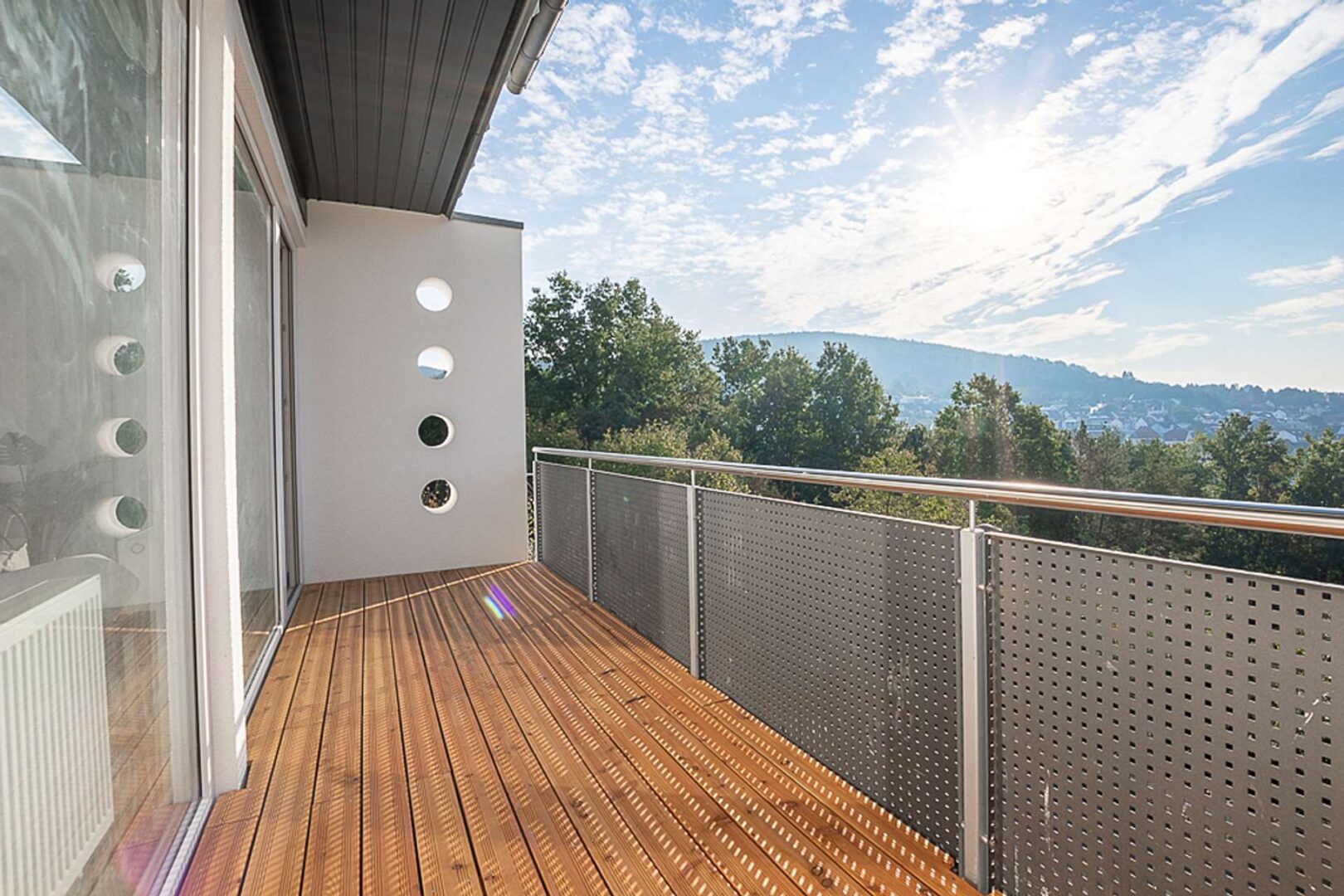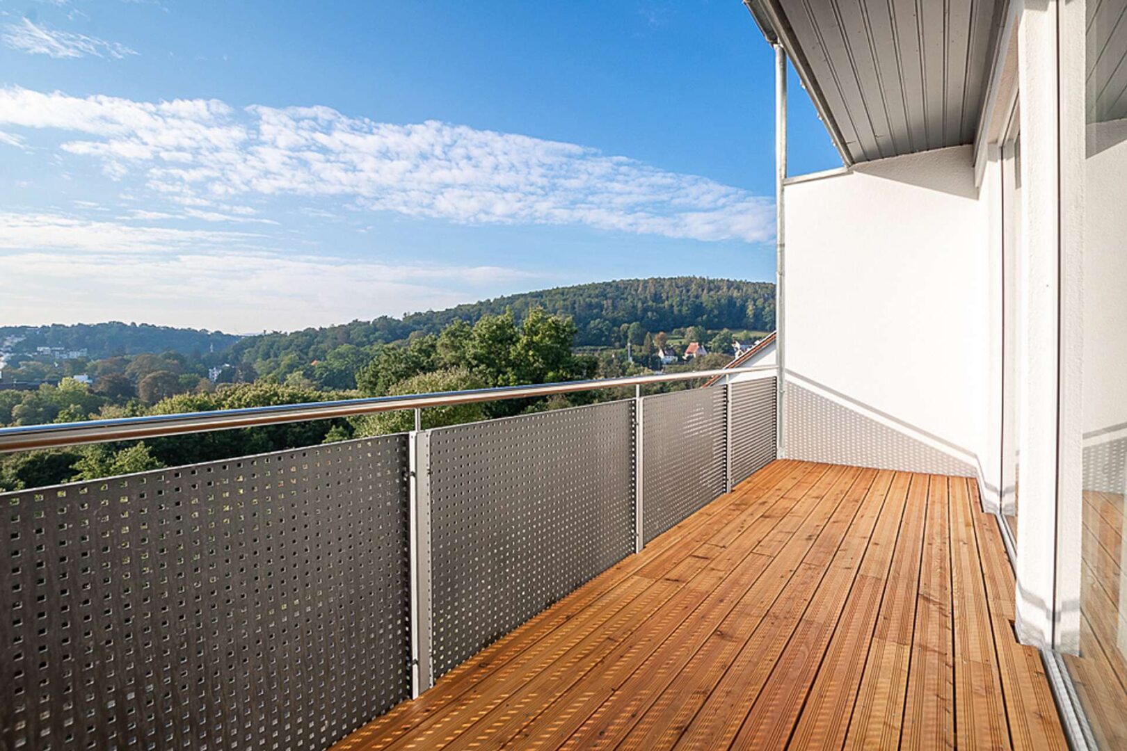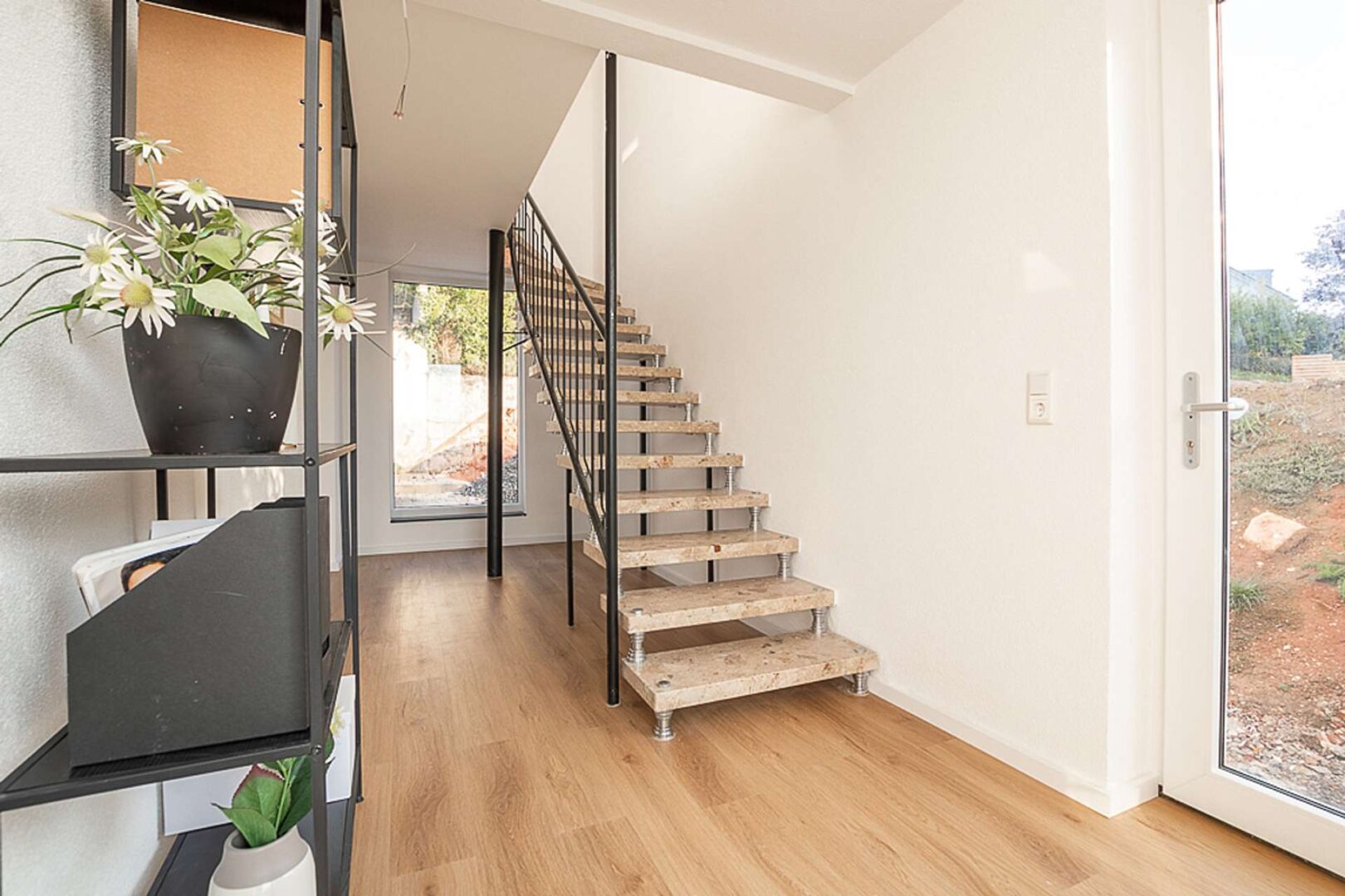 Über einen Treppenaufgang gelangen Sie von Ihrem Parkplatz zu Ihrem Hauseingang. Nach dem Betreten Ihrer Wohnung befinden Sie sich im lichtdurchfluteten Treppenhaus. Vom Erdgeschoss gelangen Sie in zwei Zimmer (Durchbruch zu einem großem Zimmer ist bei Wunsch unproblematisch umsetzbar) mit jeweiligem Balkonzugang. Der Balkon hat einen Echtholzboden und bietet Ihnen einen großartigen Weitblick auf Bad Salzschlirf und ins Grüne.
