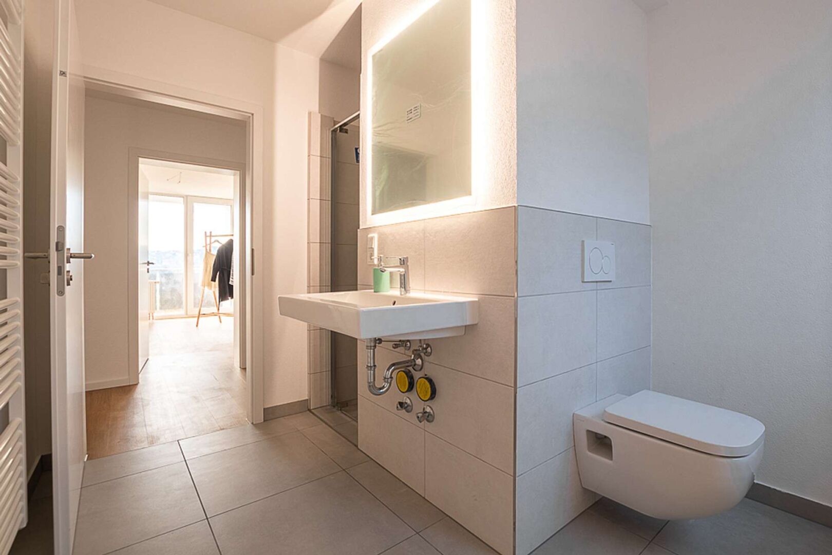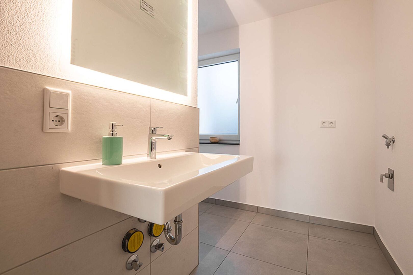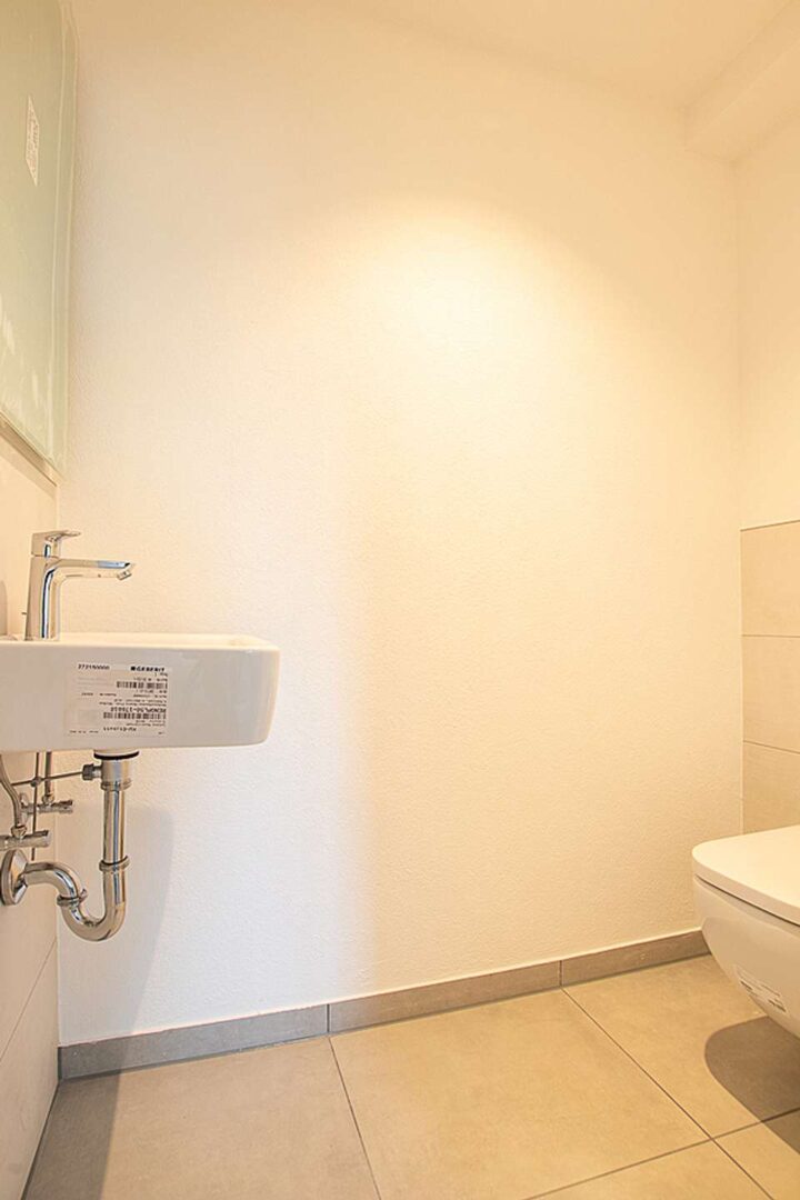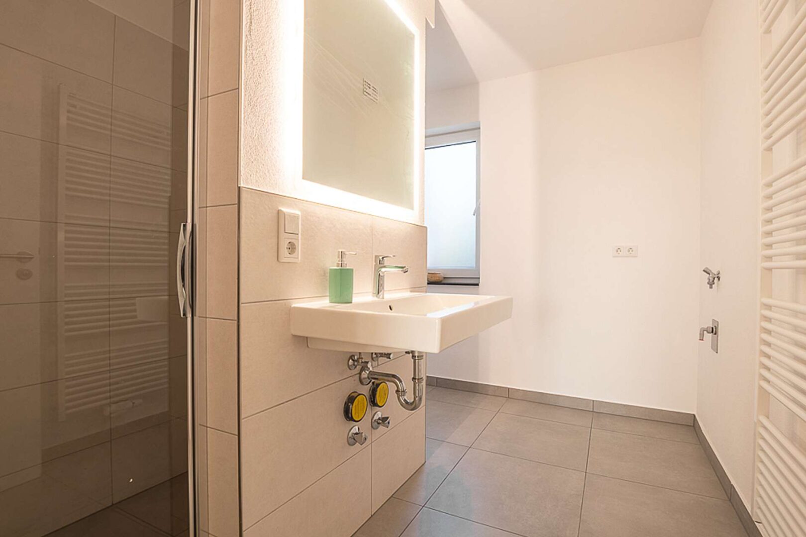 Im Erdgeschoss befindet sich ein Bad mit Dusche und Waschmaschinenanschluss. Neben dem Bad ist ein weiteres Zimmer. Dieses eignet sich ideal als Schlafzimmer, als Arbeitszimmer, oder auch als Spielzimmer.