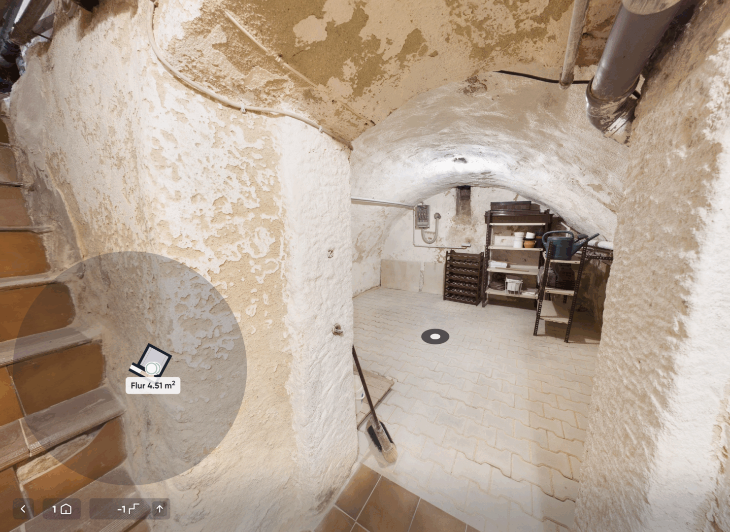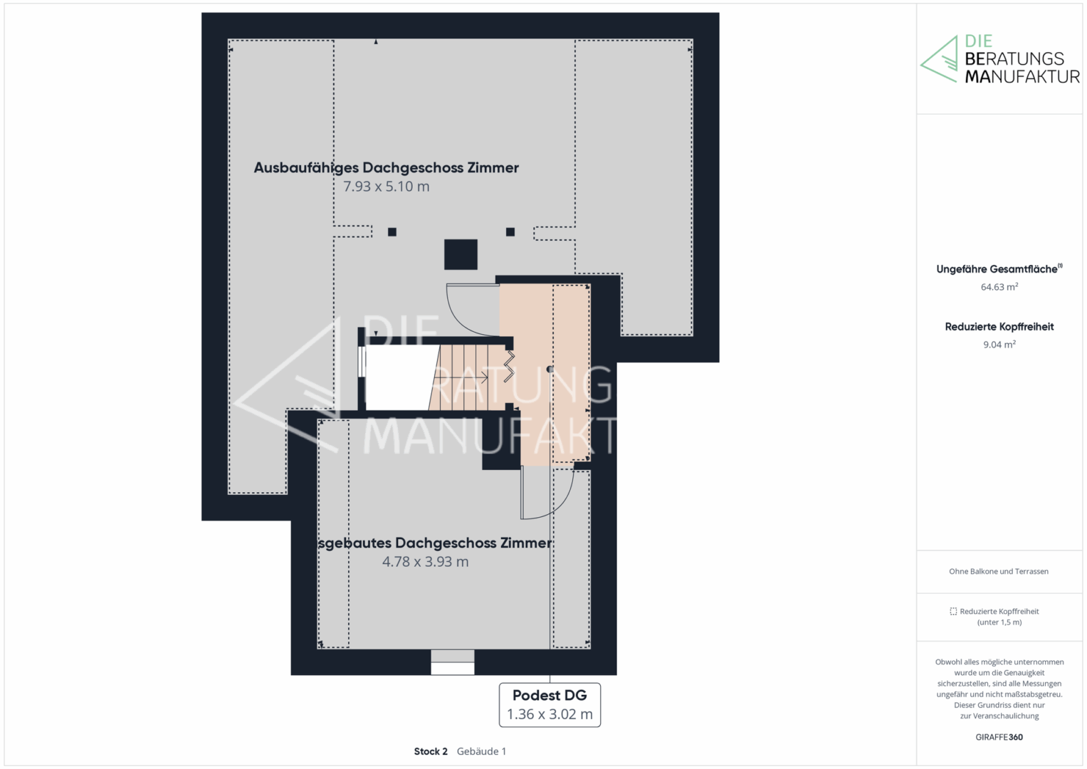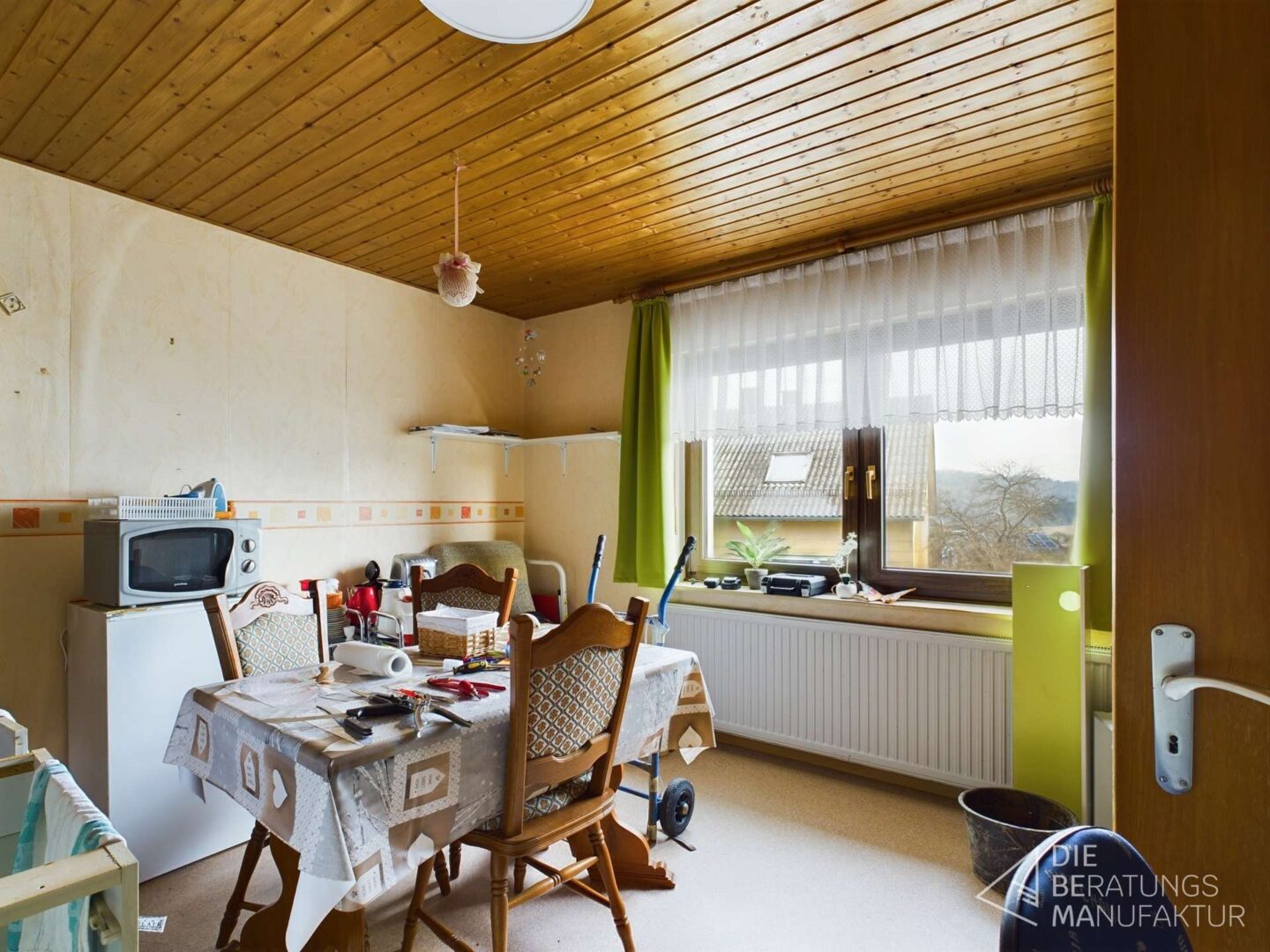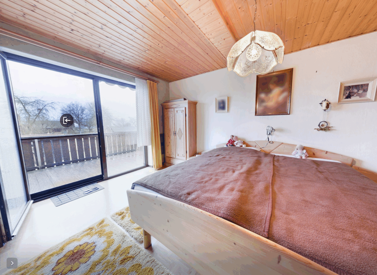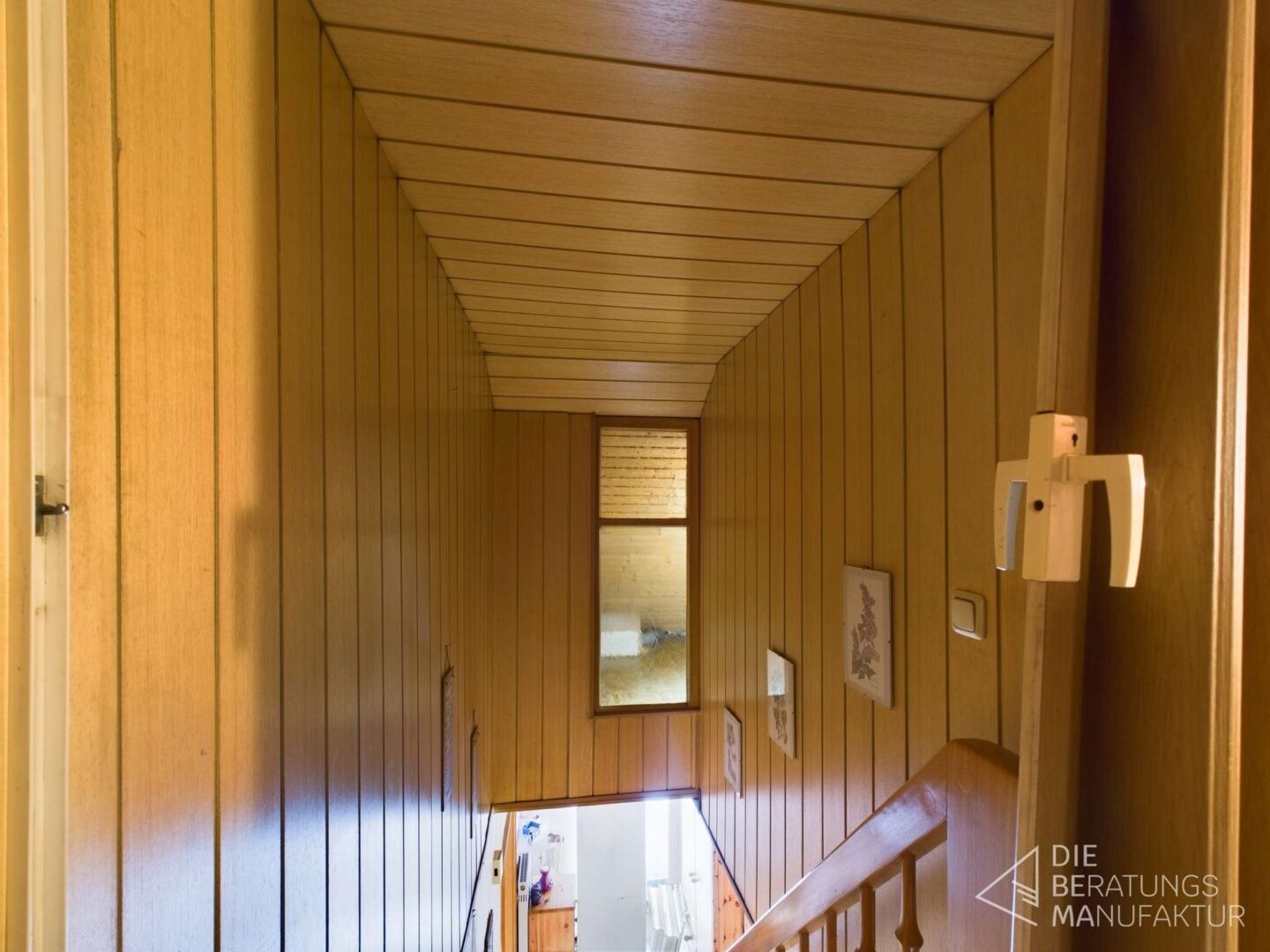 Über die offene, schöne Treppe im Erdgeschoss gelangen Sie in den nächsten Stock und das Dach. Im Dachgeschoss wurde bereits ein Zimmer ausgebaut; es eignet sich gut für Übernachtungsgäste. Den übrigen noch nicht ausgebauten Teil des Daches können Sie nach Ihrer Fantasie gestalten.