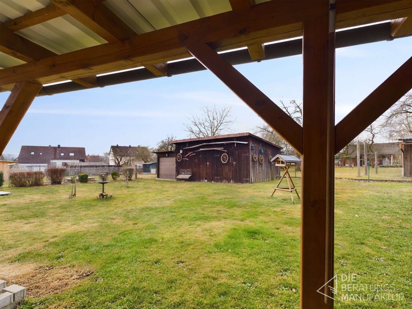 Zum Haus gehört ein großer Garten (mit Terrasse und Partyraum) mit genügend Platz zum Spielen, Feiern und für die eigene Ernte von selbstangebautem Gemüse.