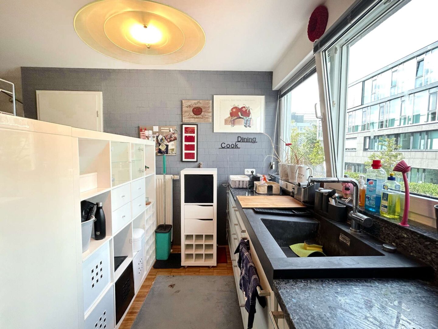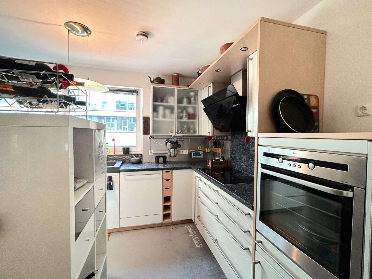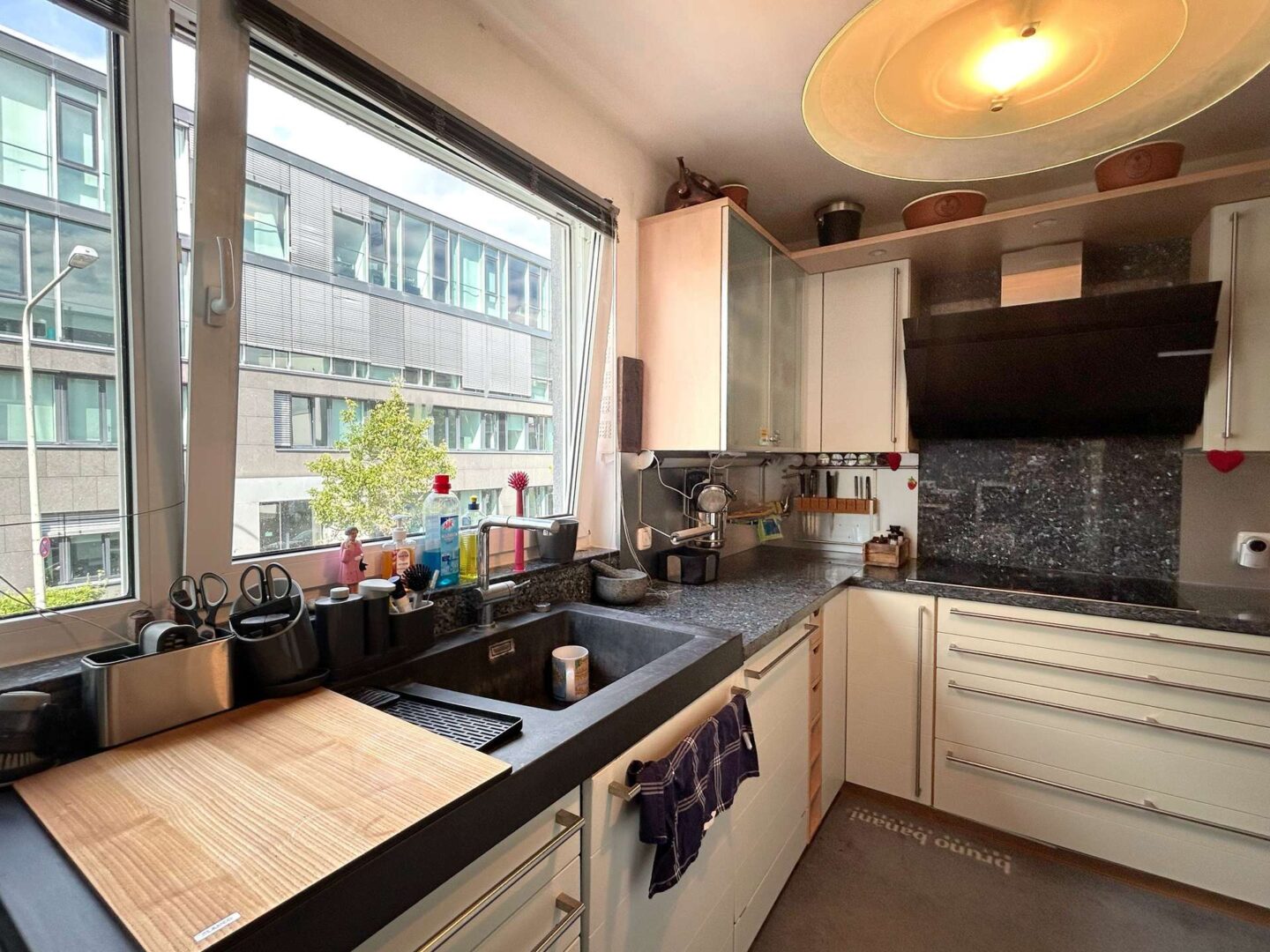 - Einbauküche mit massiven Granitplatten und Induktionsherd vorhanden