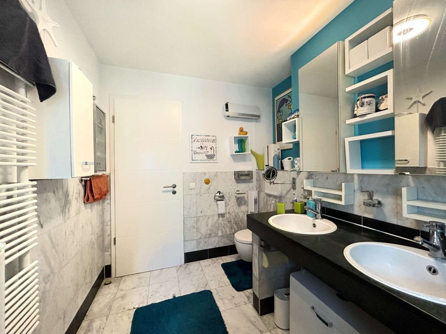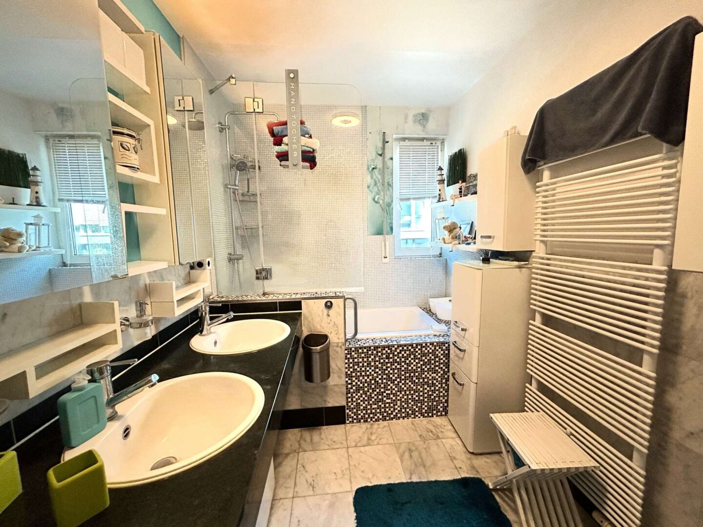 - hochwertiger Marmor in den Badezimmern, Parkett in allen Räumen