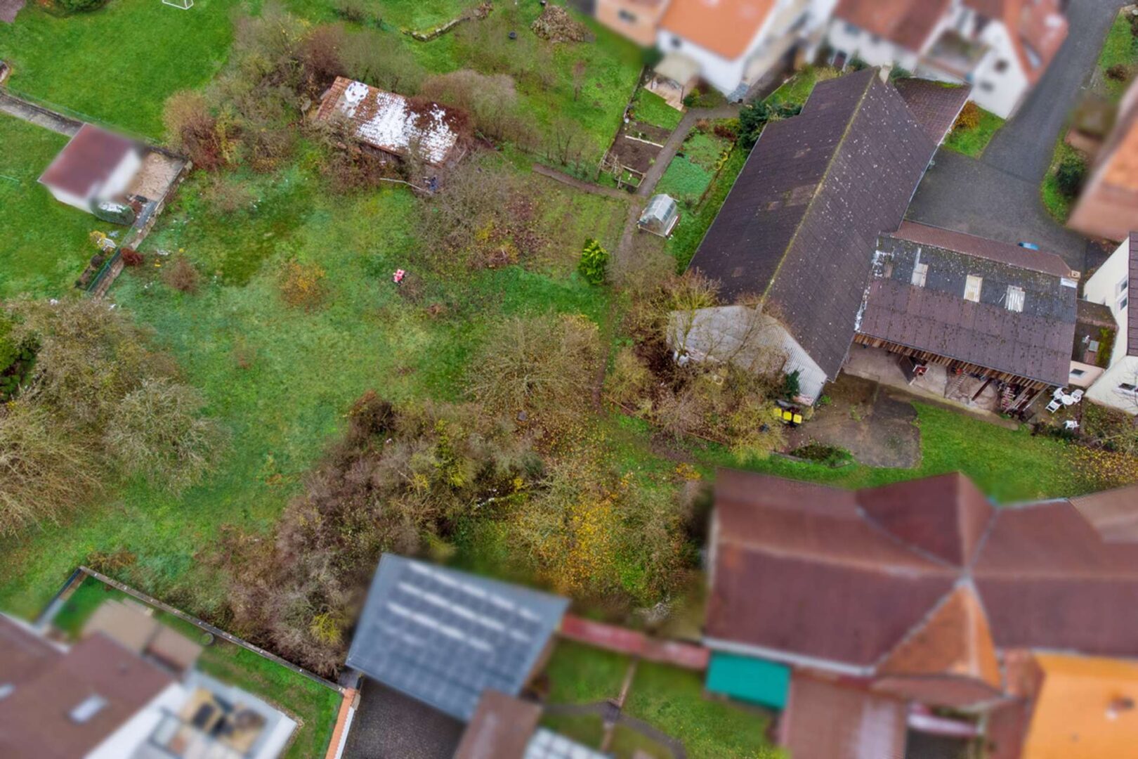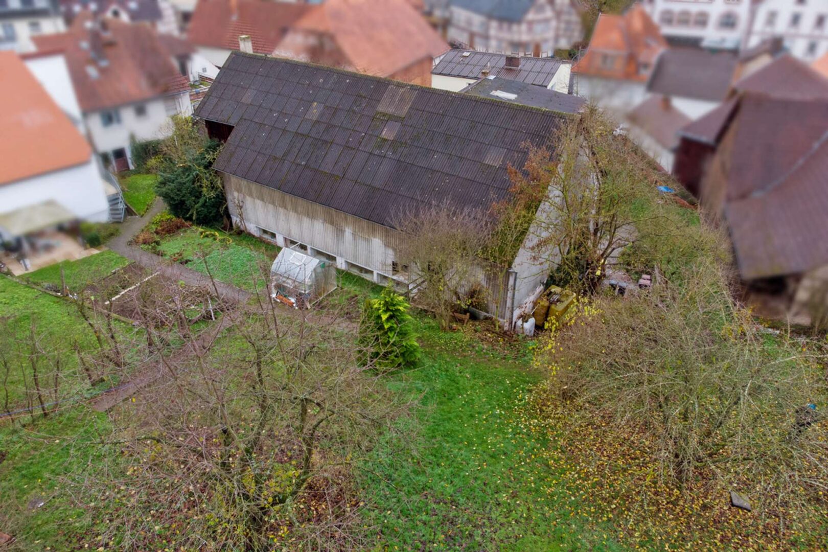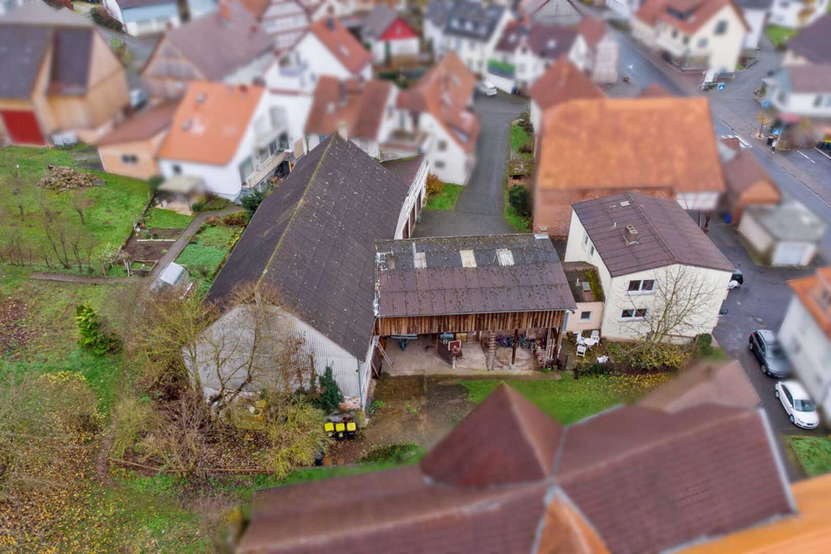 Die Außenanlagen mit Nebengebäuden machen das Objekt zu einem echten Highlight. Der Scheunentrakt ist überdacht und somit auch für größere Fahrzeuge eine optimale Unterstellmöglichkeit. Sie gelangen über diese Durchfahrt auch direkt in den großen Garten, der an die Grundstücke Ihrer neuen Nachbarn angrenzt.