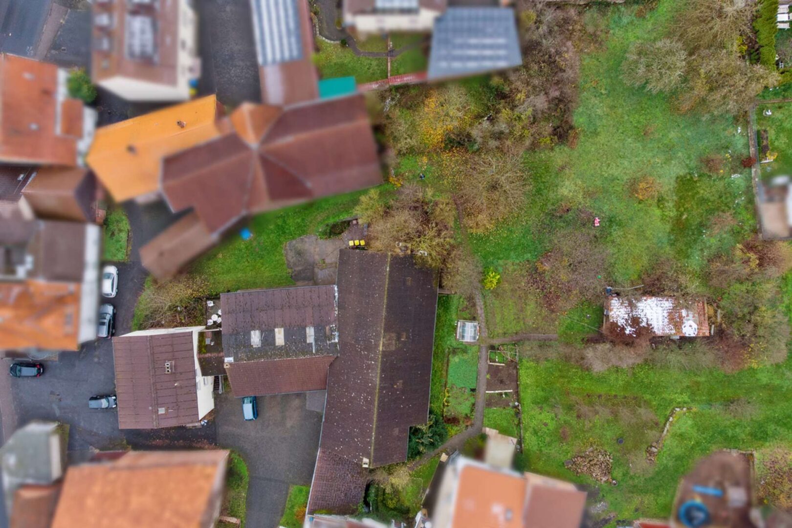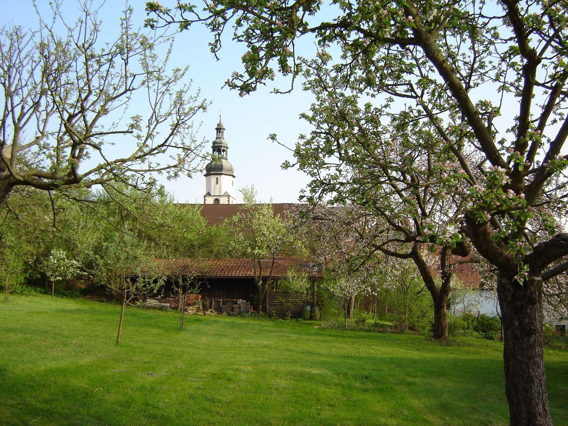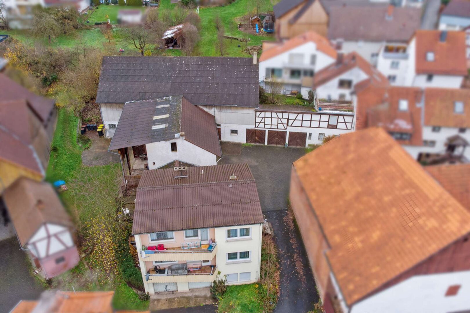 Die Außenanlagen mit Nebengebäuden machen das Objekt zu einem echten Highlight. Der Scheunentrakt ist überdacht und somit auch für größere Fahrzeuge eine optimale Unterstellmöglichkeit. Sie gelangen über diese Durchfahrt auch direkt in den großen Garten, der an die Grundstücke Ihrer neuen Nachbarn angrenzt.