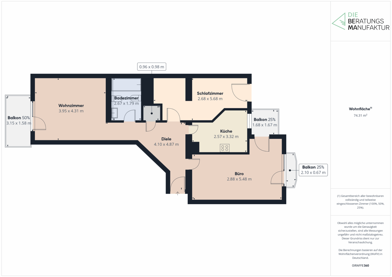 Ein besonderes Highlight: Drei Balkone, die zu jeder Tageszeit sonnige Rückzugsorte im Freien bieten – ob für den Morgenkaffee, die Mittagspause oder den Abend mit Blick ins Grüne.